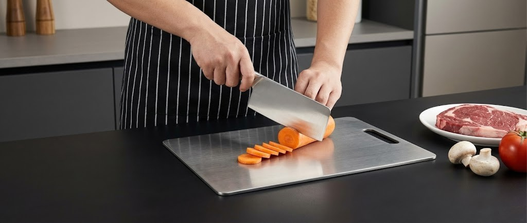 Tired of replacing cutting boards that crack, warp, or degrade? Titanryx™ is made from premium titanium, designed to resist heat, deep scratches, and corrosion. This is a one-time purchase that’s built to last, providing reliable performance for years of everyday use without compromising on quality or appearance.